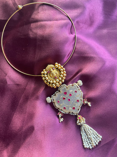One of a kind, statement pearl choker necklace with kundan work pendant