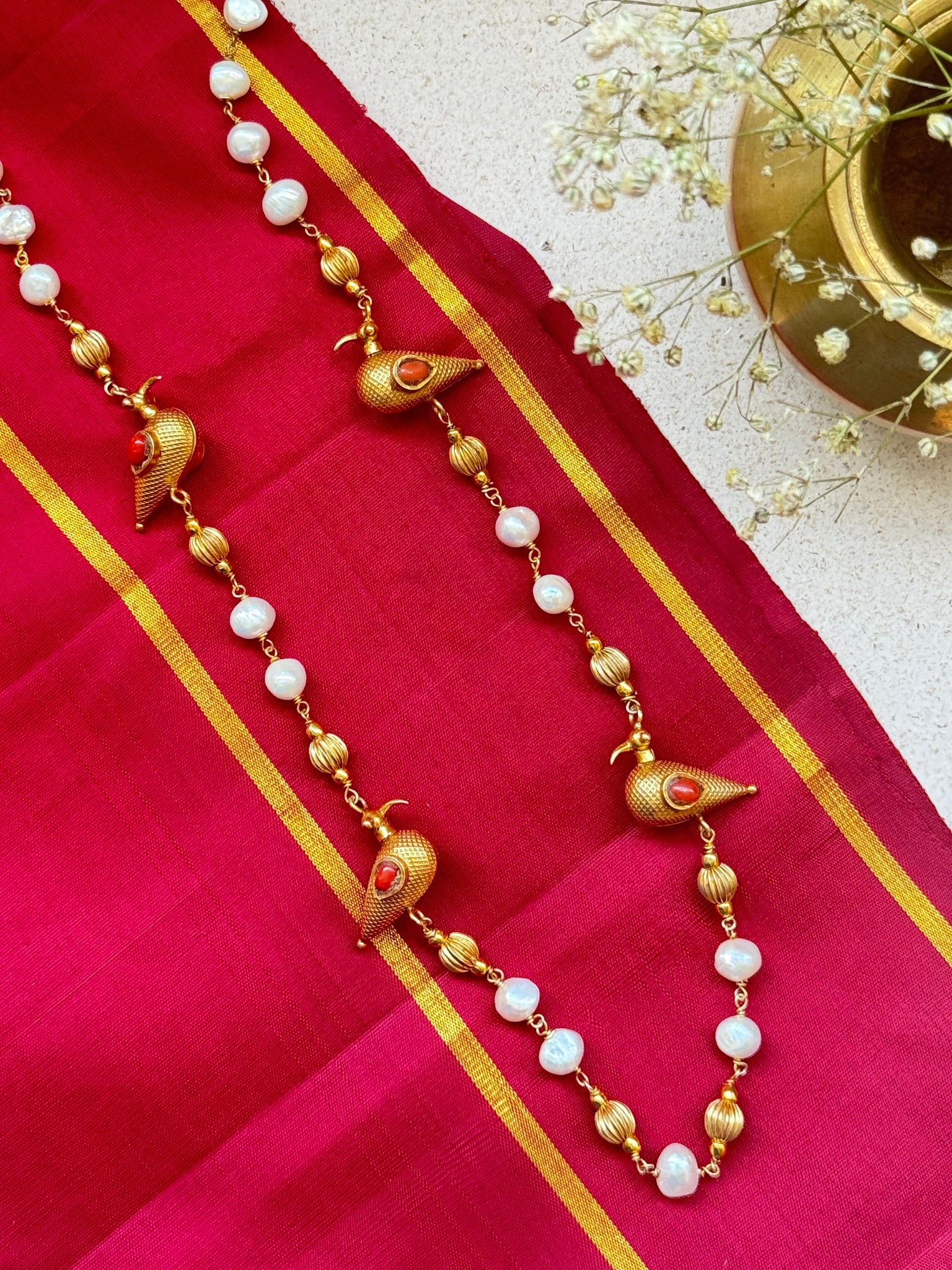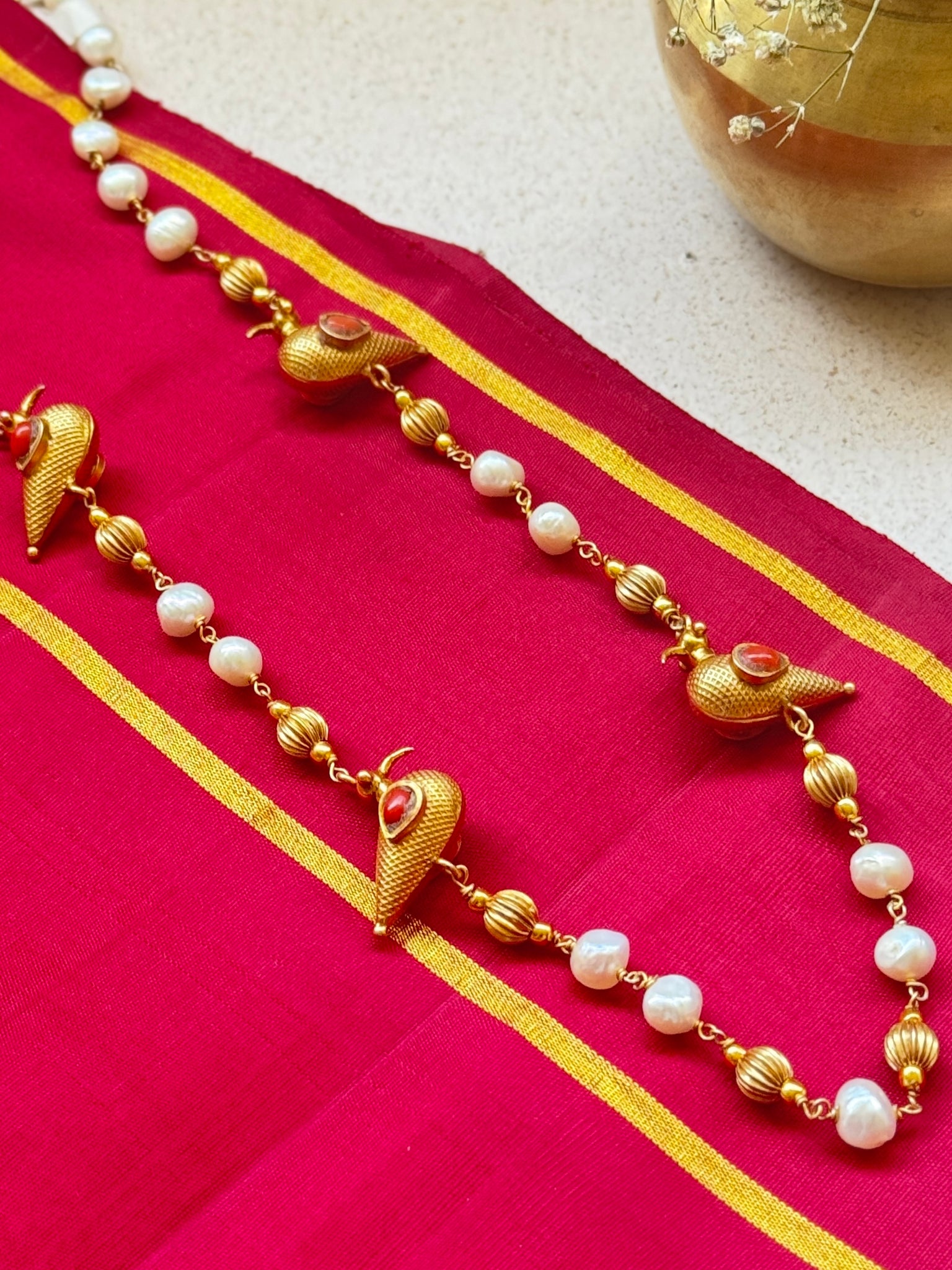 Handcrafted in 925 silver with natural pearls and birds, in gold tone this beautiful neckpiece is our newest launch in 2024 :)