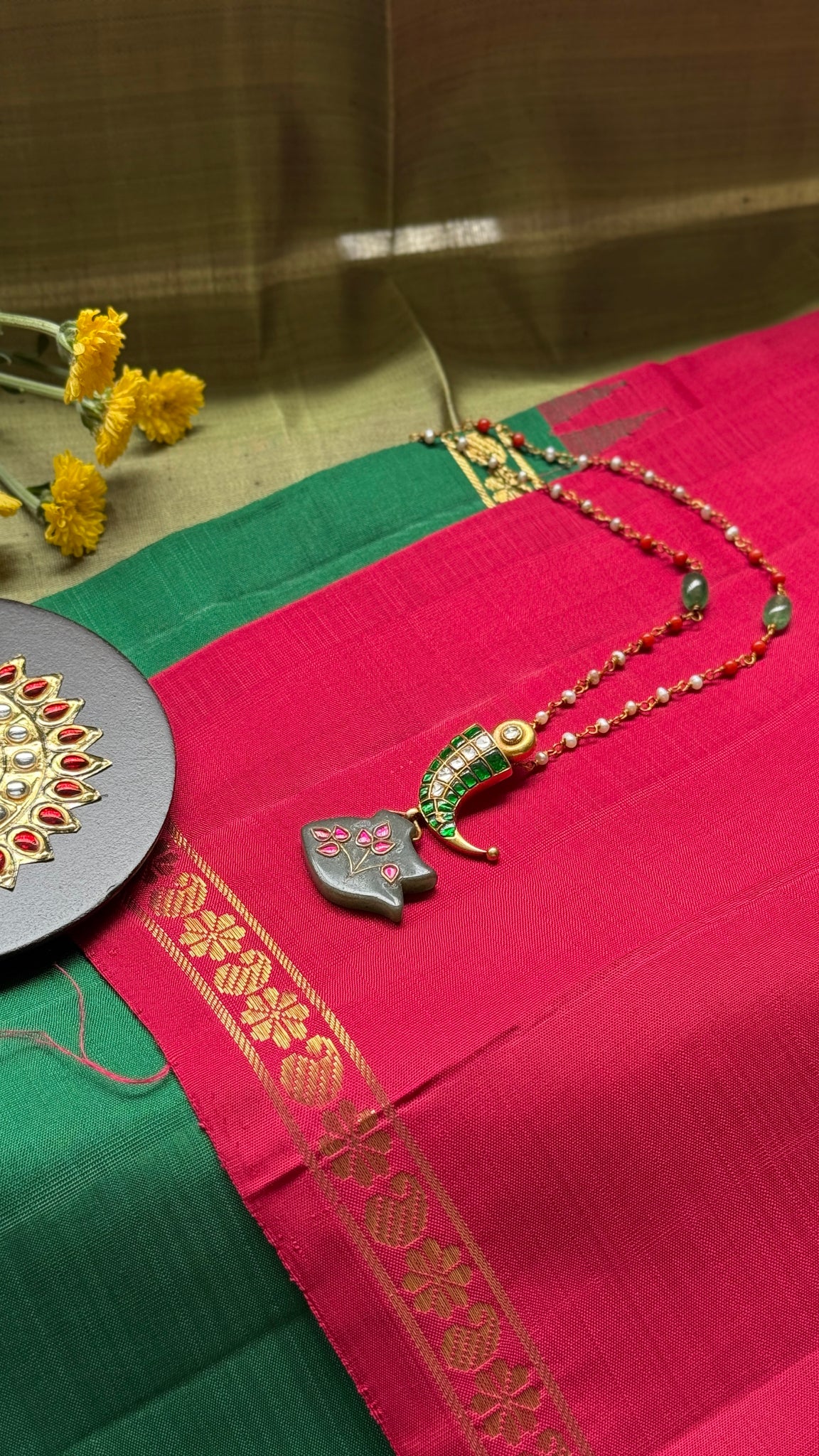 Material Used: 92.5 Silver and natural jade ,pearls,kundan stones and gold polish.
