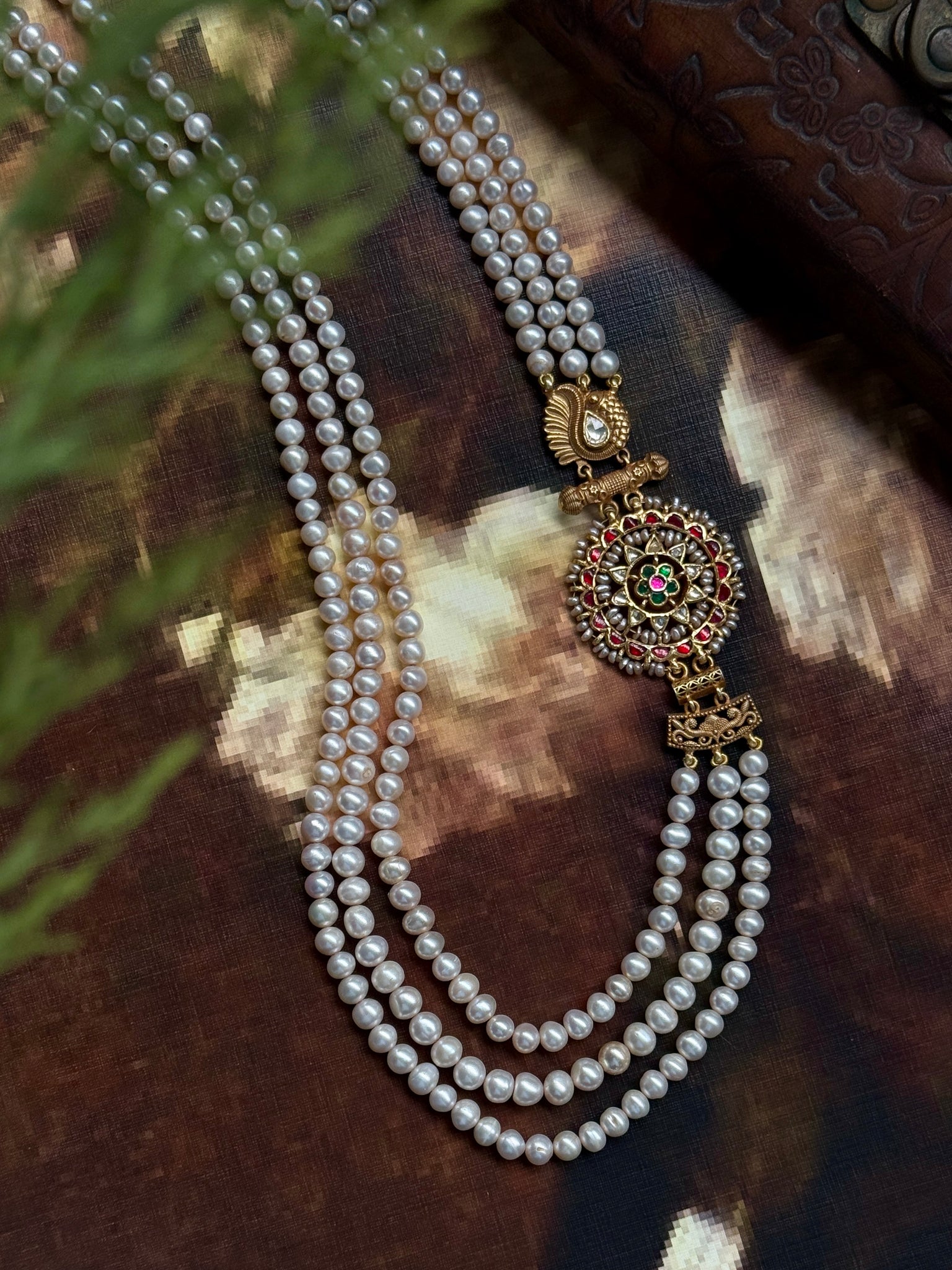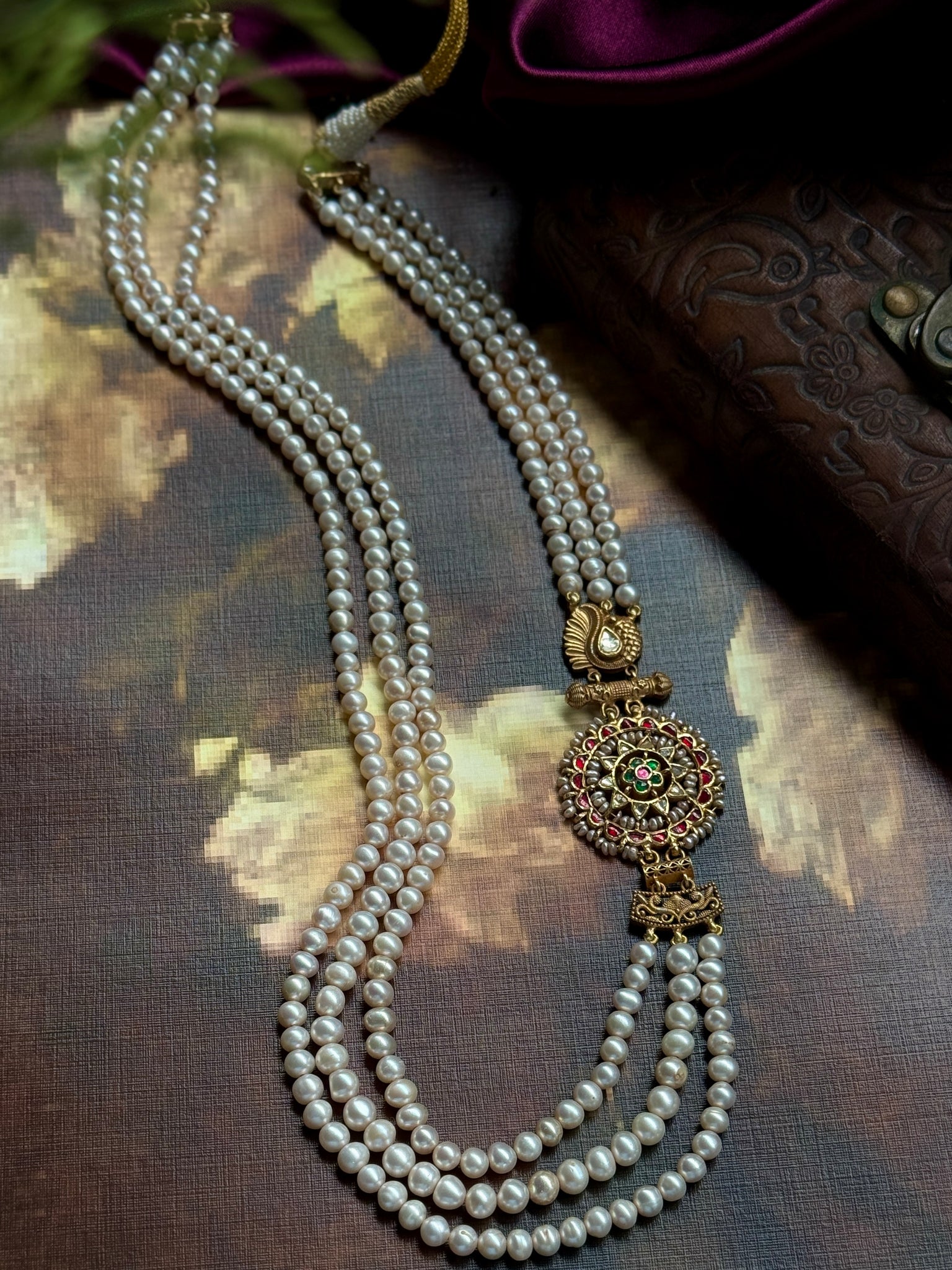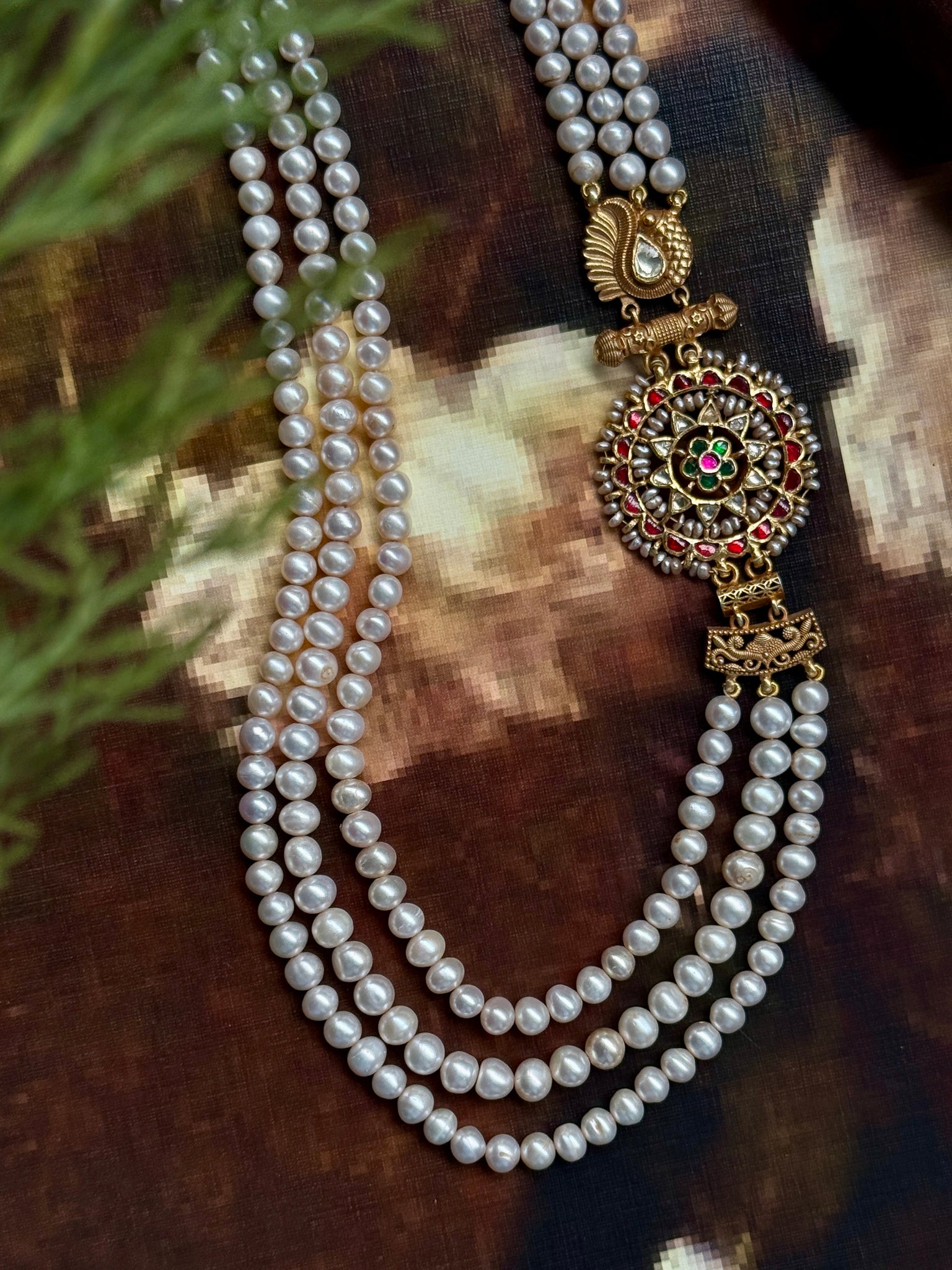 This one of a kind necklace is handcrafted in silver with pearls and kundan locket. A versatile piece that is unique and made by our master artisan for our newest festive pearl collection for the year 2025