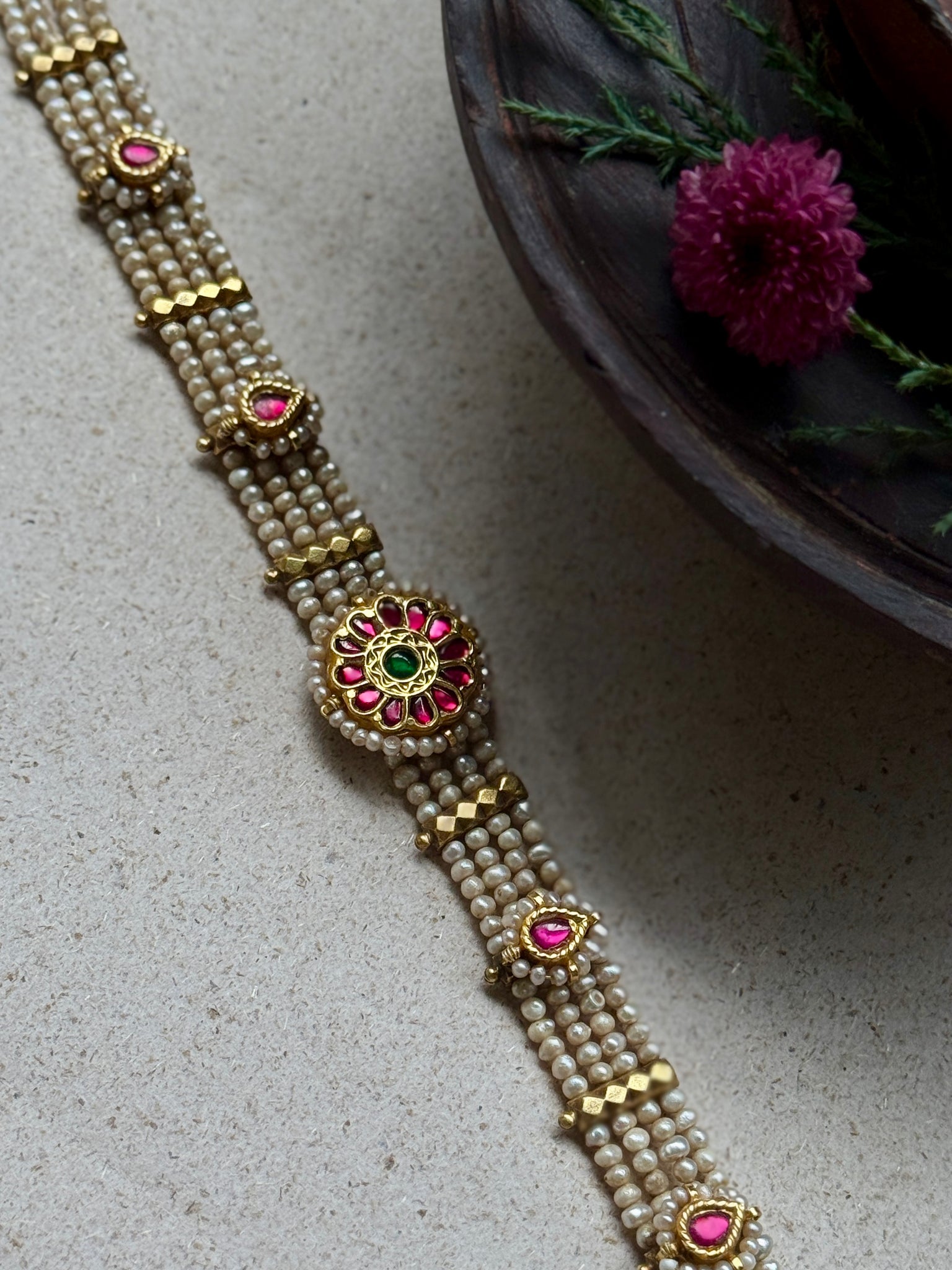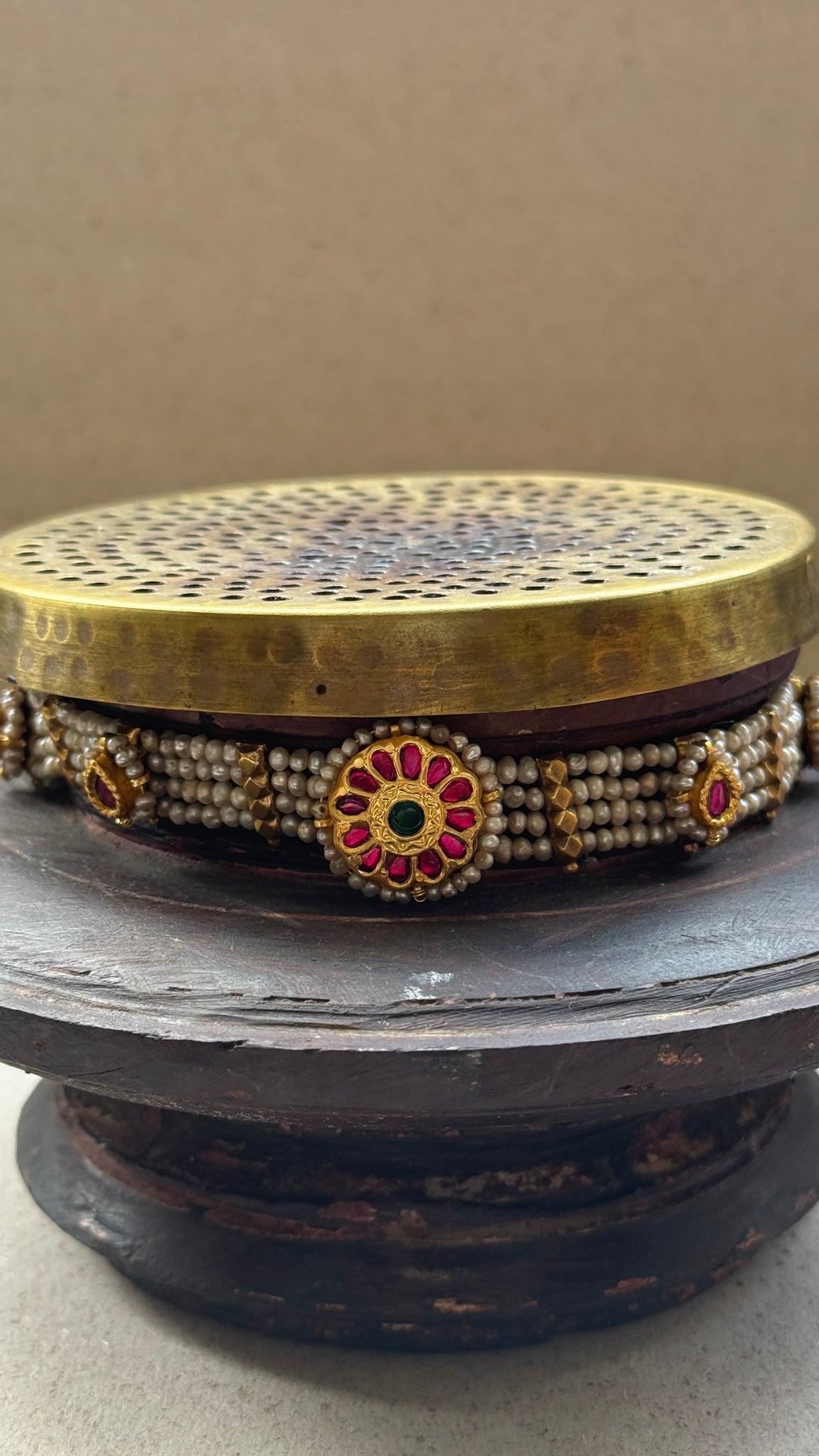 This pearl choker necklace is handcrafted in silver with unique style of pendants . A versatile piece that is made by our master artisan ,from our newest of the festive pearl collection for the year 2025.