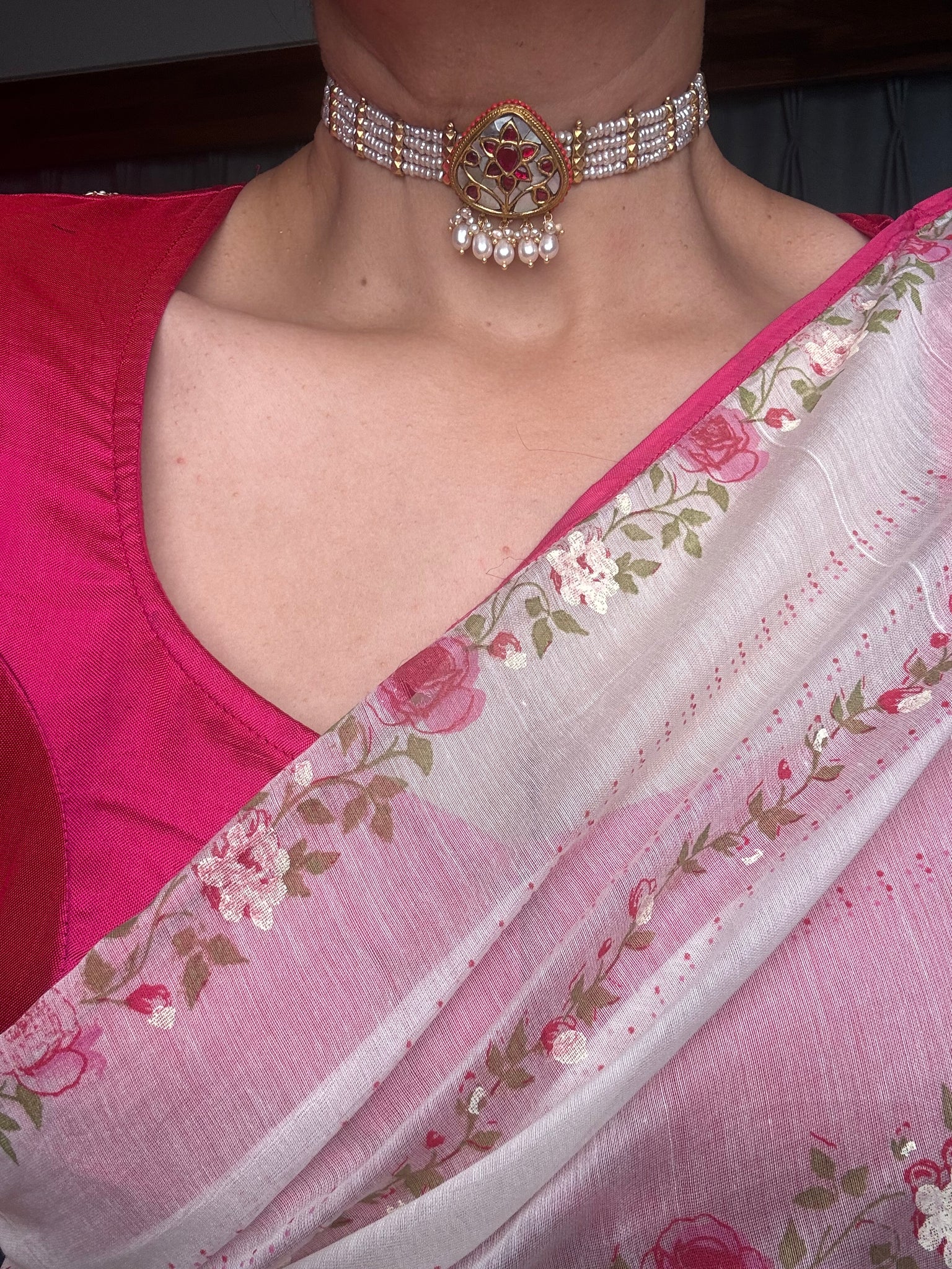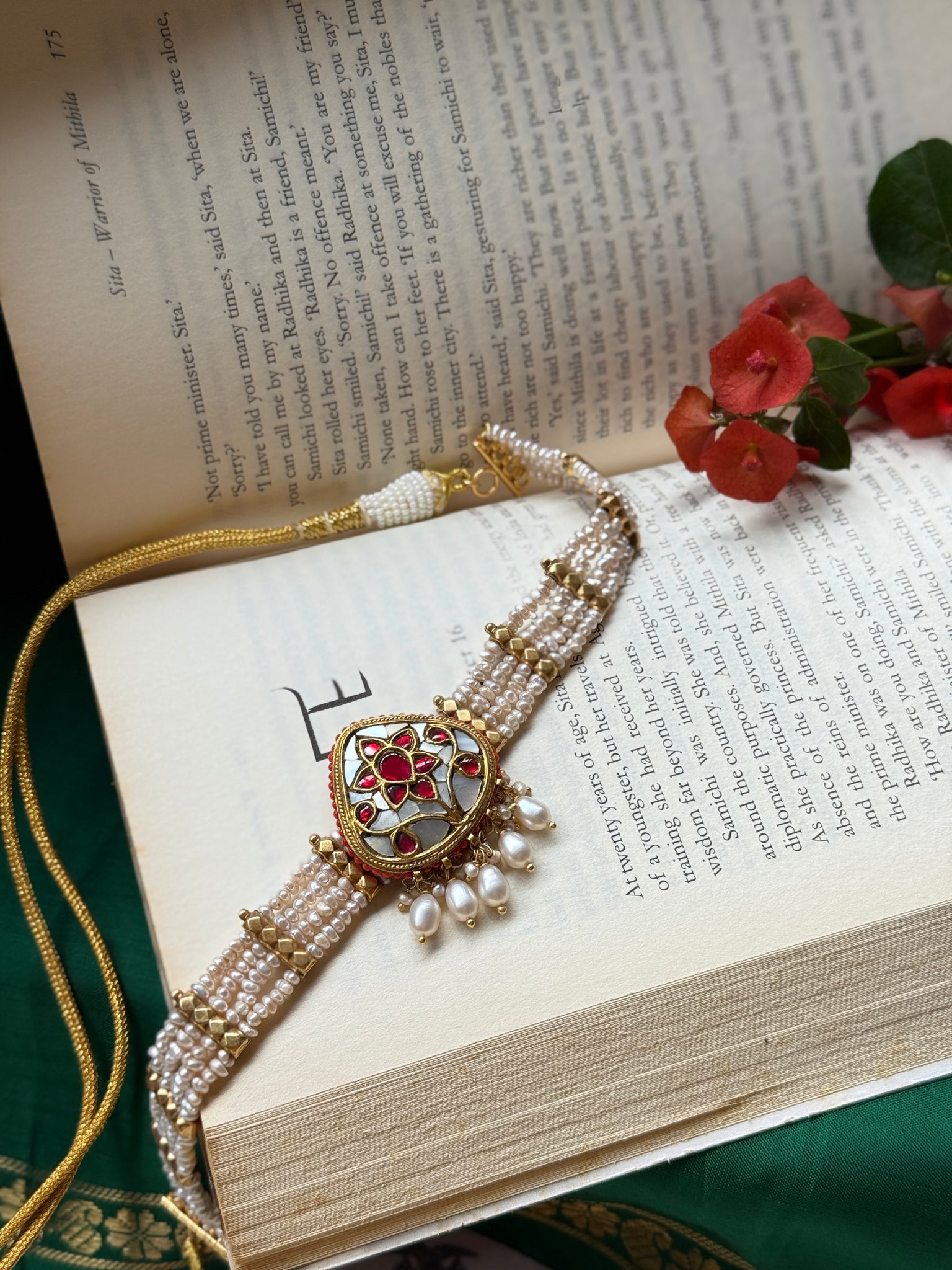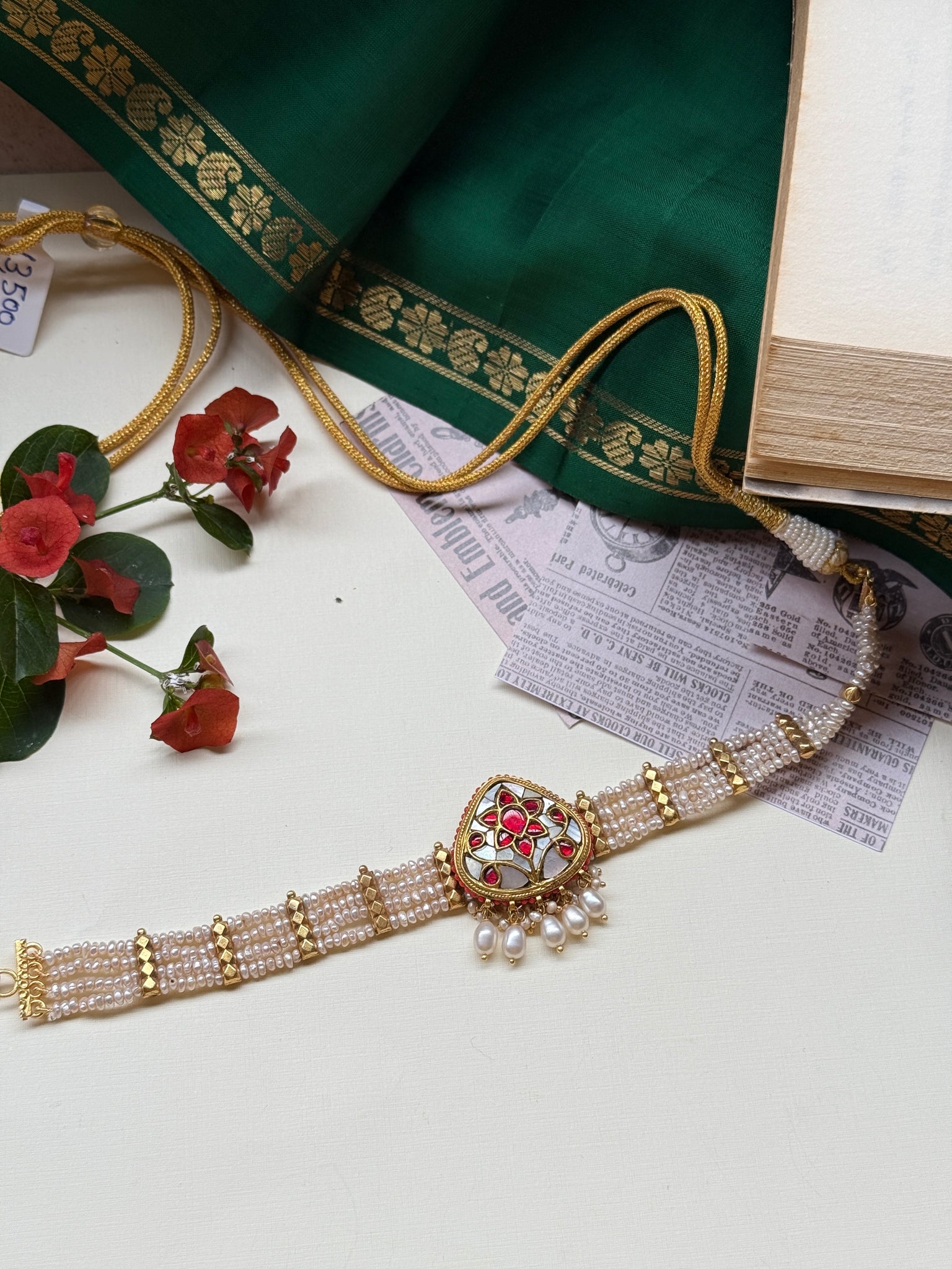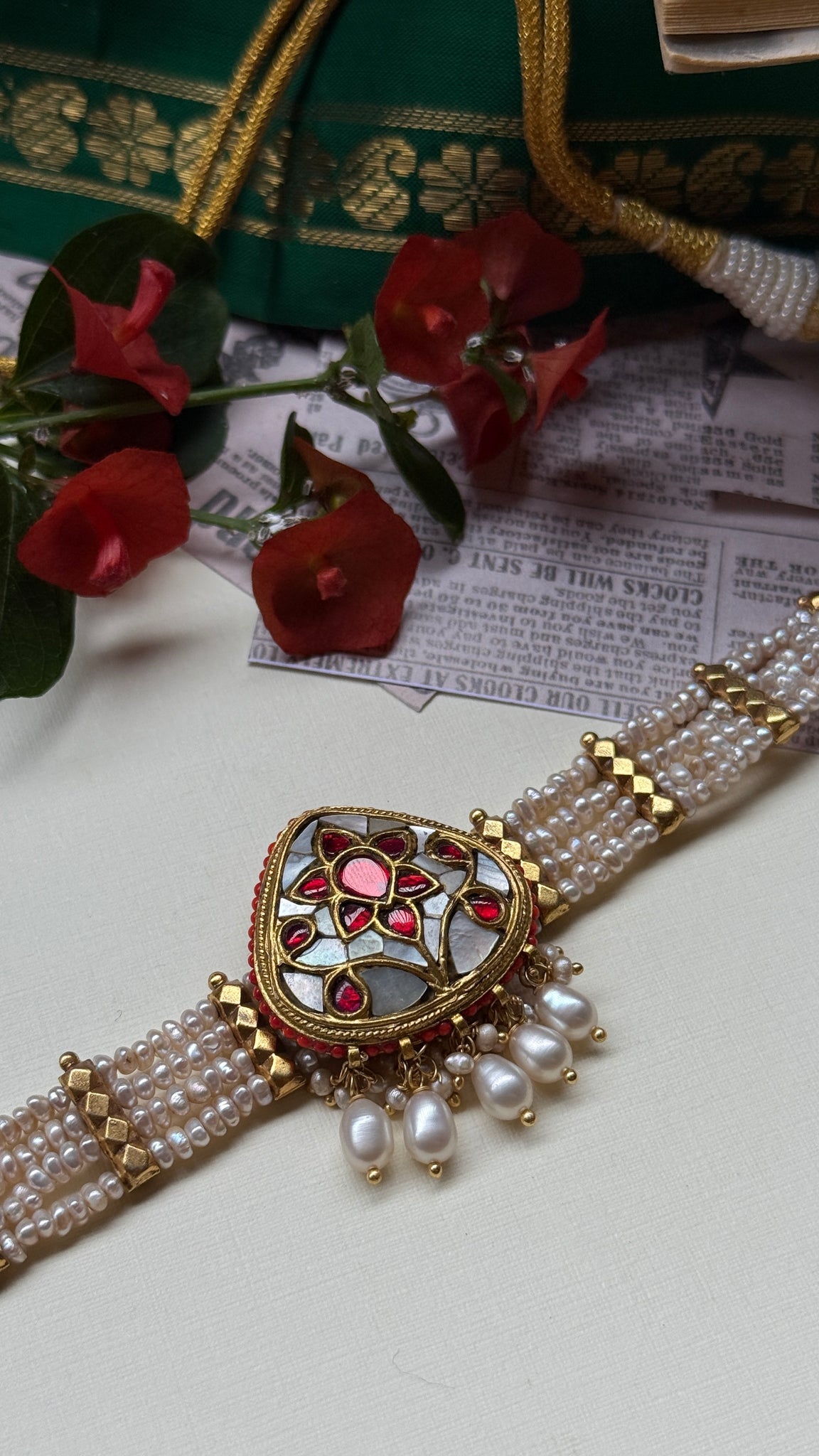 This pearl choker necklace is handcrafted in silver with unique style of pendants . A versatile piece that is made by our master artisan ,from our newest of the festive pearl collection for the year 2025.