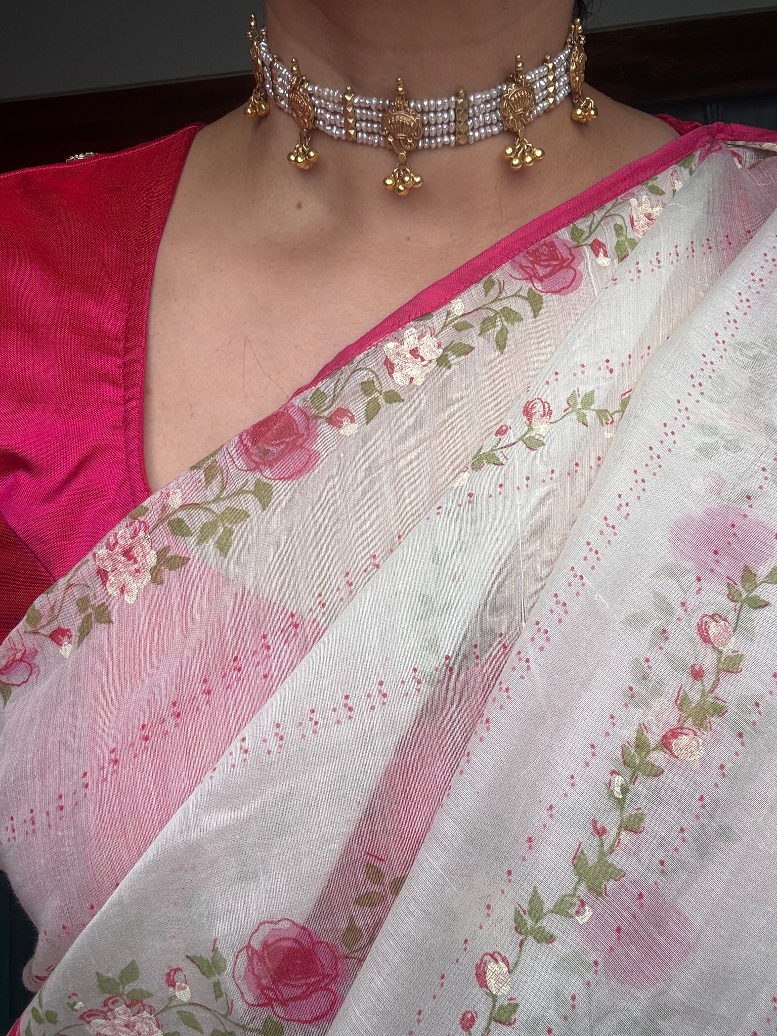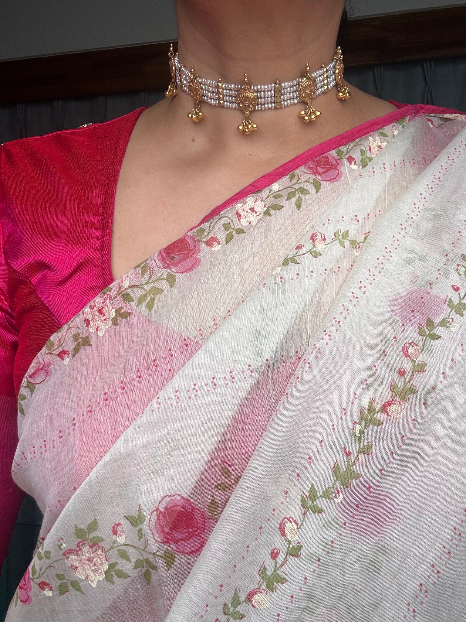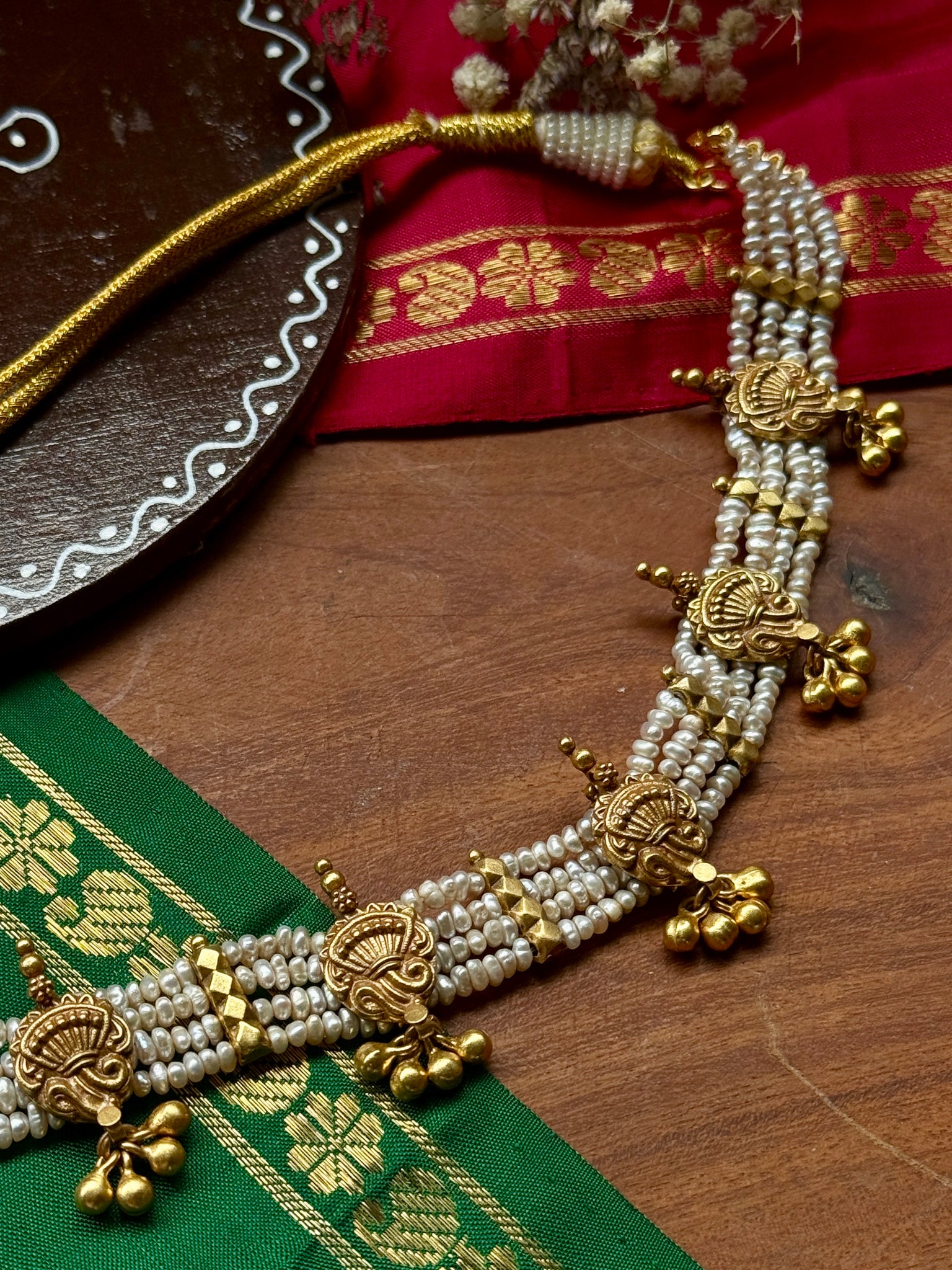 This pearl choker necklace is handcrafted in silver with unique style of pendants . A versatile piece that is made by our master artisan ,from our newest of the festive pearl collection for the year 2025.