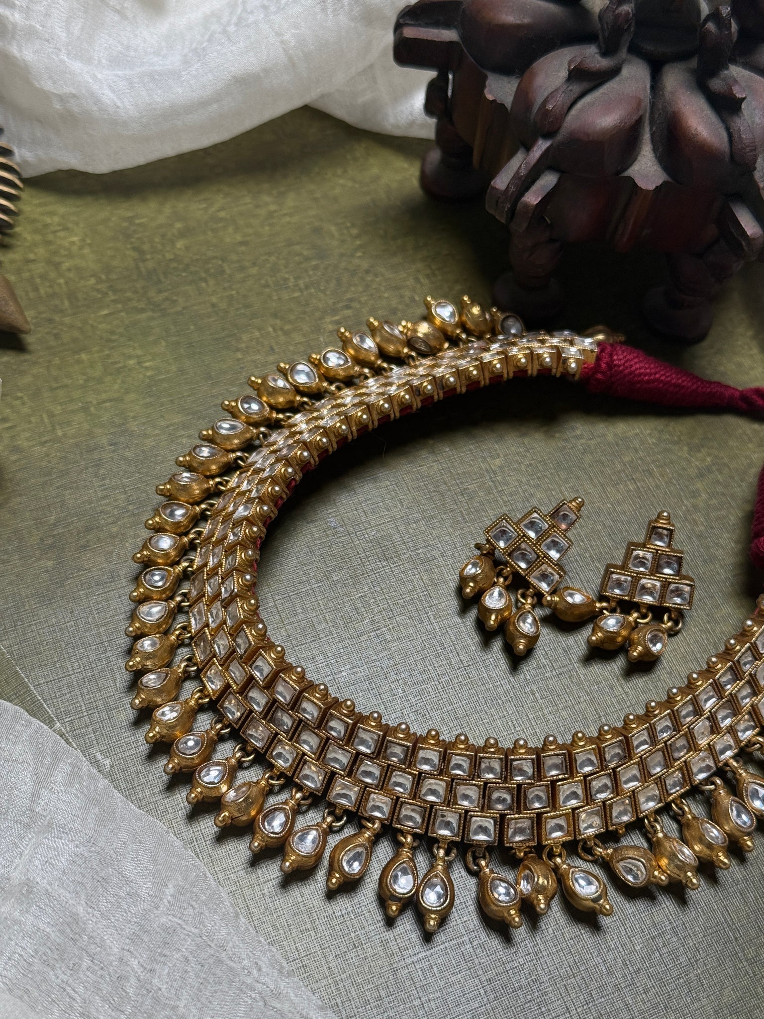 Statement kundan choker necklace with earrings.