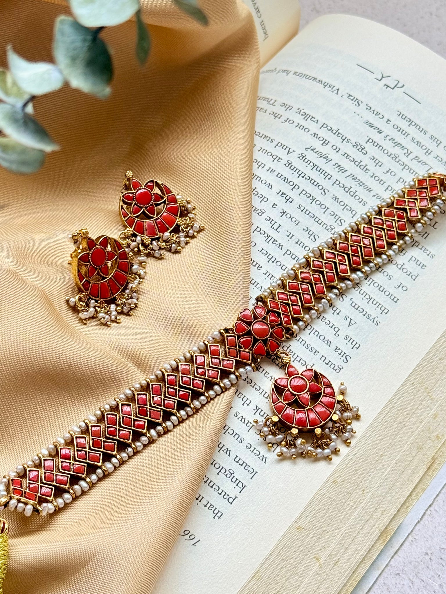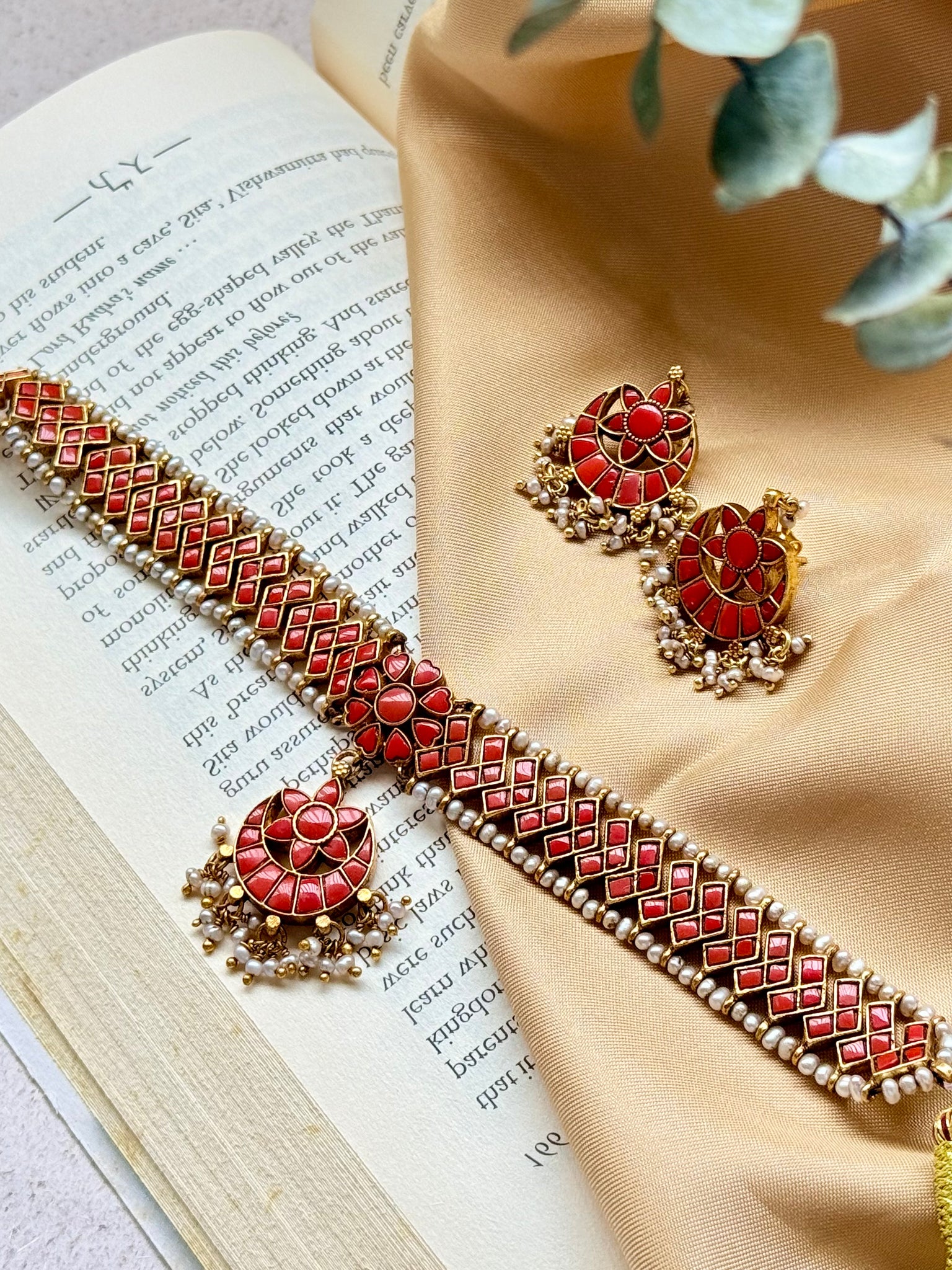 This beautiful traditional attigai/ choker is a newest addition to our collection with corals and pearls along the necklace.A timeless & classic piece.