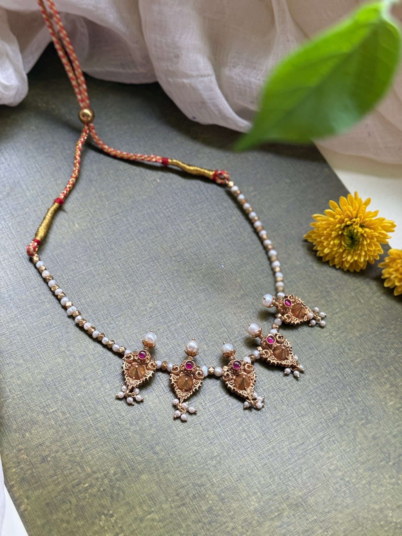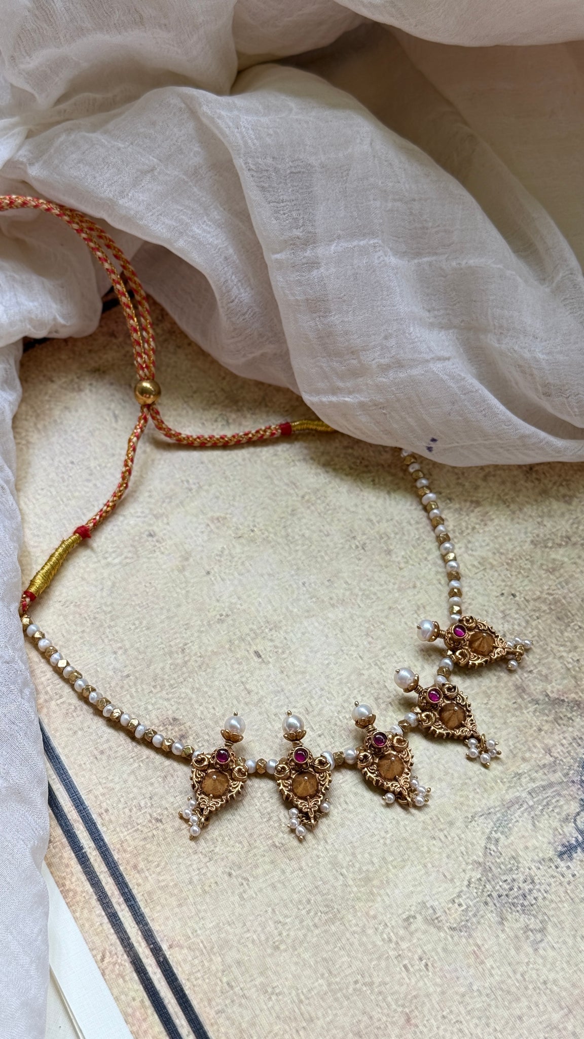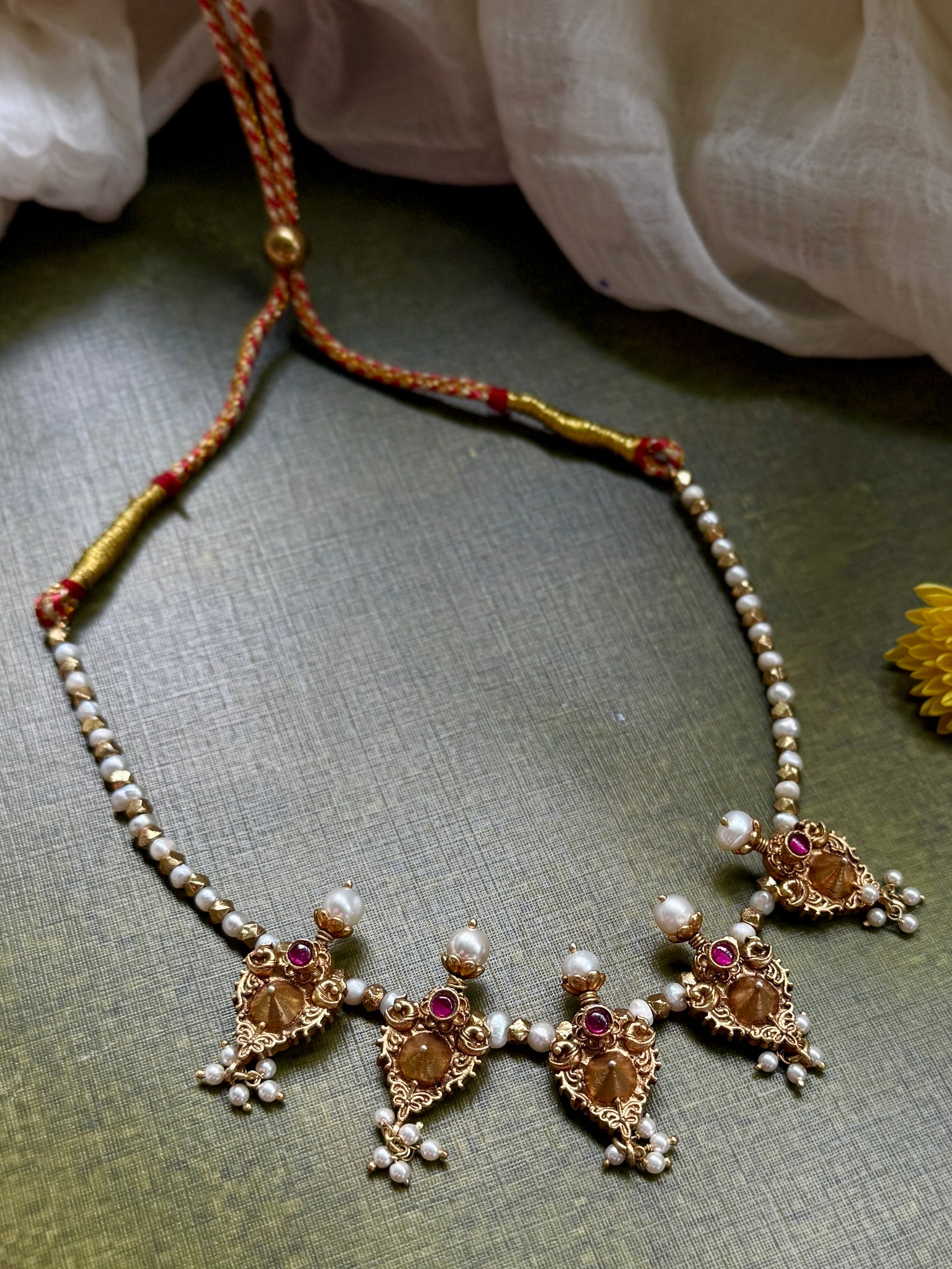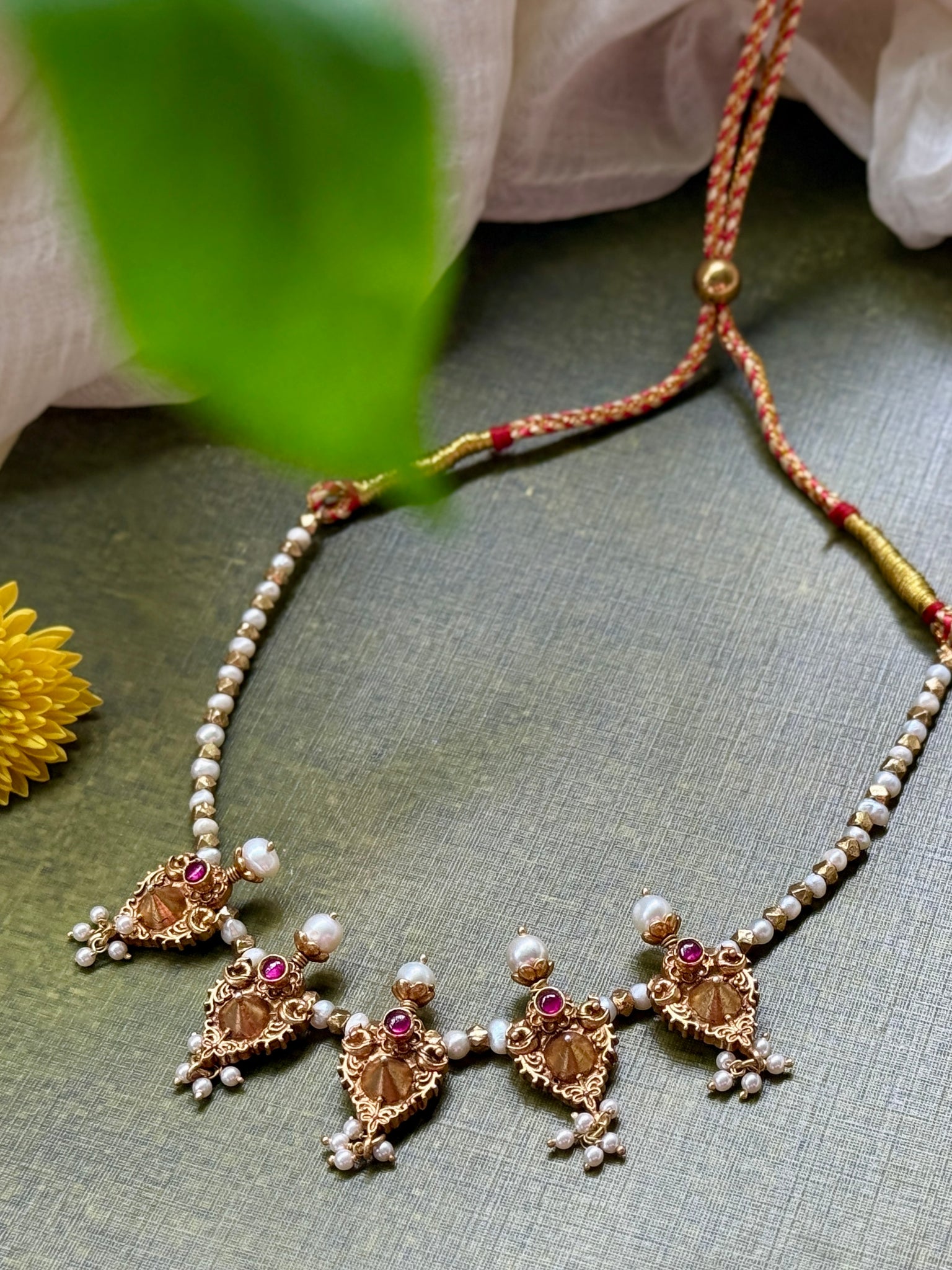 pearl necklace handcrafted in silver with rare intricate motifs and kundan stones . A versatile piece that is made by our master artisan for our new Diwali collection .