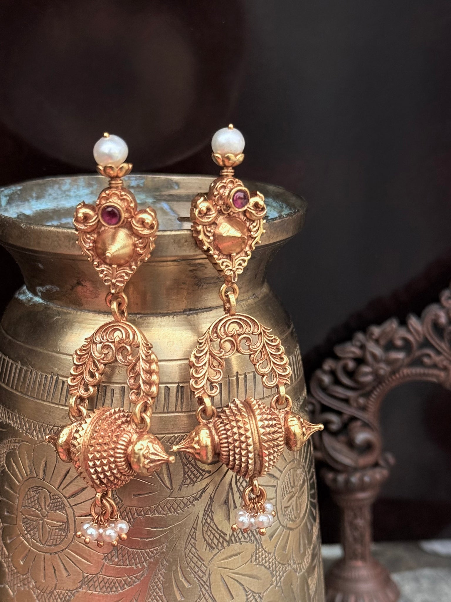 A pair of stunning earrings (in silver 925) and antique gold polish. This whole collection is inspired by old vintage gold pieces. Made by our master artisans, for you
